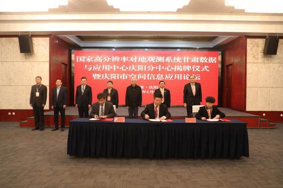 1月7日至8日,高分辨对地观测系统甘肃数据与应用中心庆阳分中心揭牌仪式暨庆阳市空间信息应用论坛在庆阳宾馆举行。会议包括庆阳空间信息数据应用座谈会、高分甘肃中心庆阳分中心签约揭牌仪式、庆阳空间信息数据应用论坛三项重要议程。