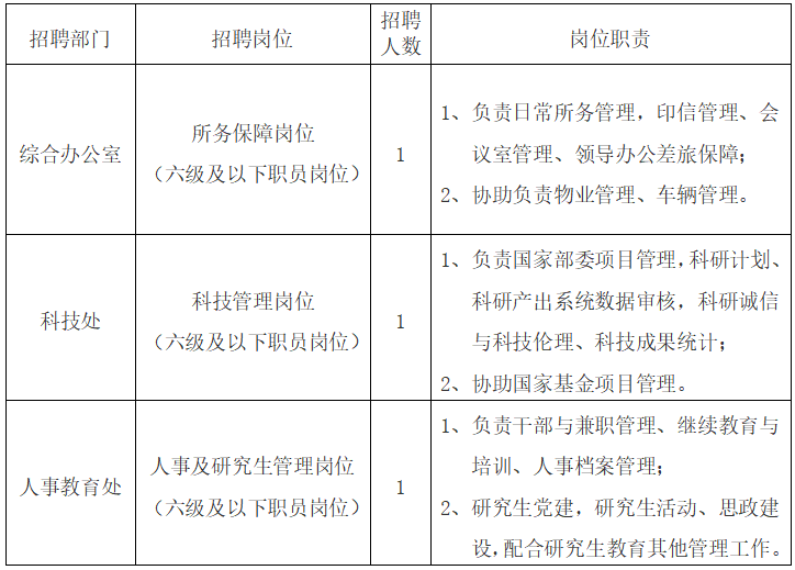 5、具有硕士研究生及以上学历学位(2026年应届毕业生应于7月31日前取得毕业证、学位证);人事教育处管理岗位要求中共党员。