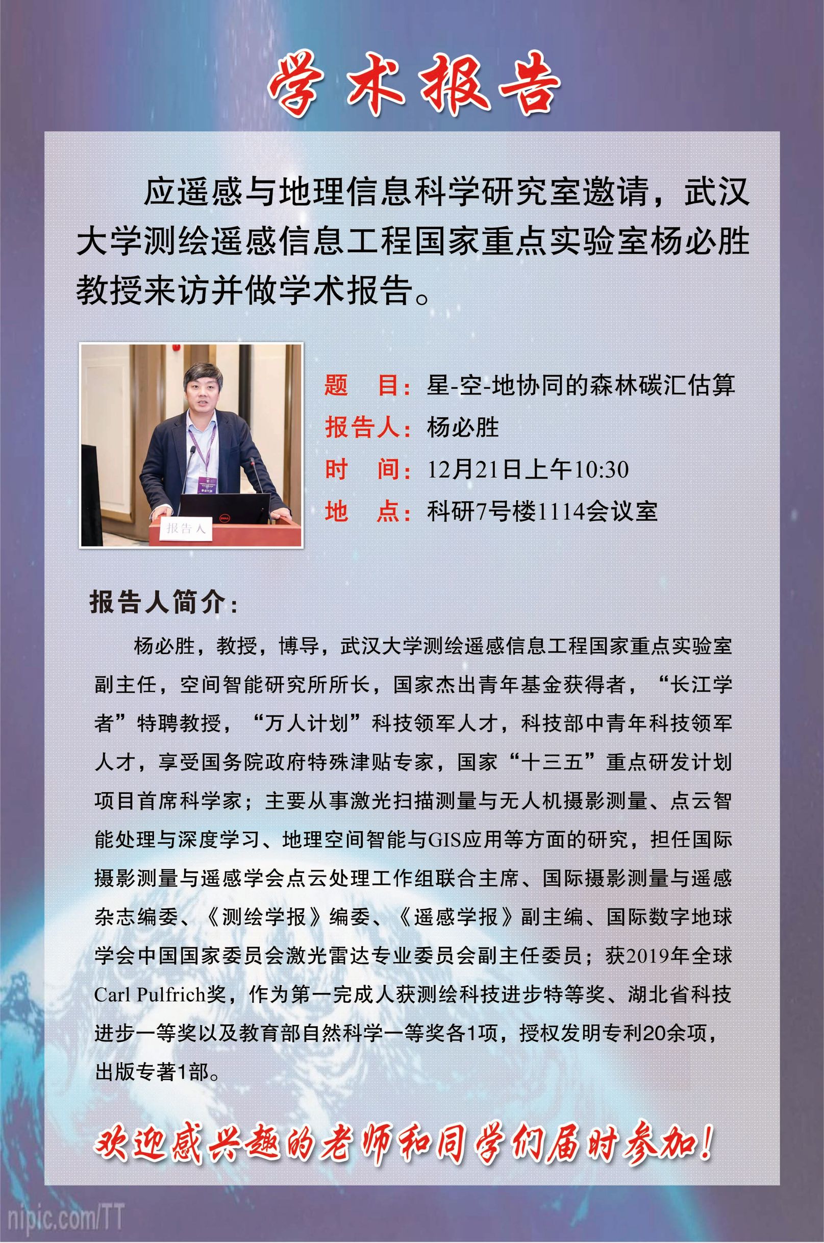 星-空-地协同的森林碳汇估算 报告人:杨必胜教授