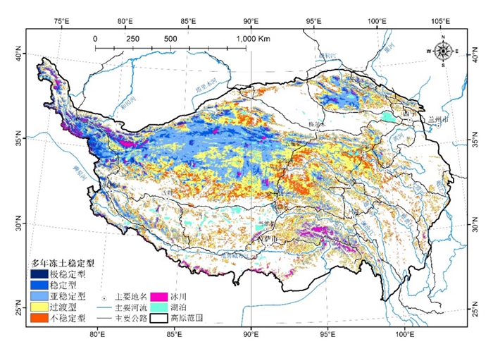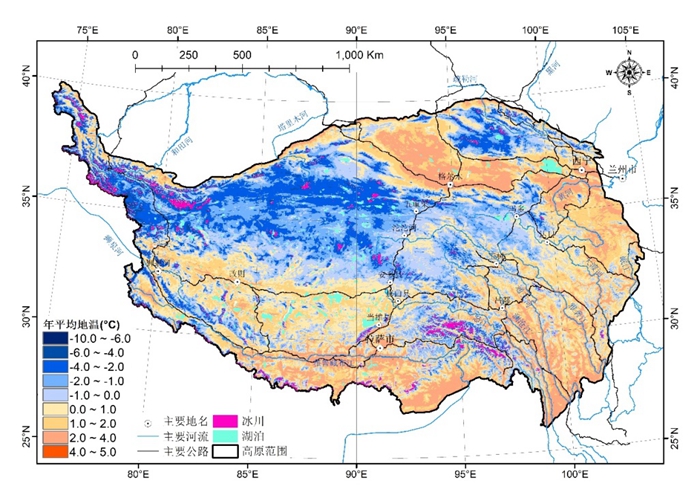 近期,中国科学院西北生态环境资源研究院冉有华副研究员(第一作者)和中国科学院青藏高原研究所李新研究员(共同通讯作者)等根据高海拔多年冻土分带方案,利用统计学习算法集成了丰富的地面观测数据和大量遥感数据,制备了代表当前时期(2005-2015年)更高精度的青藏高原多年冻土热稳定型分布图,发布了空间分辨率为1km的年平均地温等数据,可用于支持寒区工程的规划、设计及生态规划与管理,并可作为多年冻土现状的数据基准,用于评估未来青藏高原多年冻土的变化。