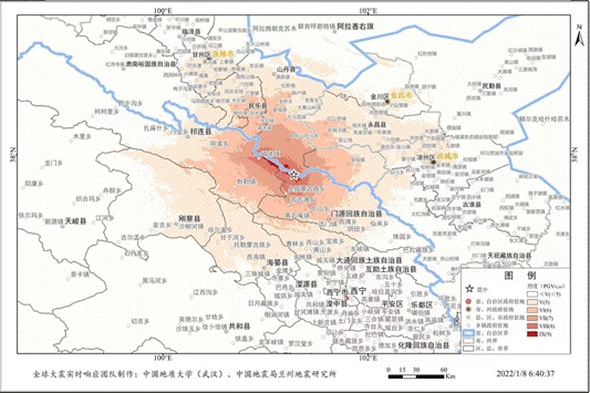 青海“1.8地震”地震烈度初步评估图