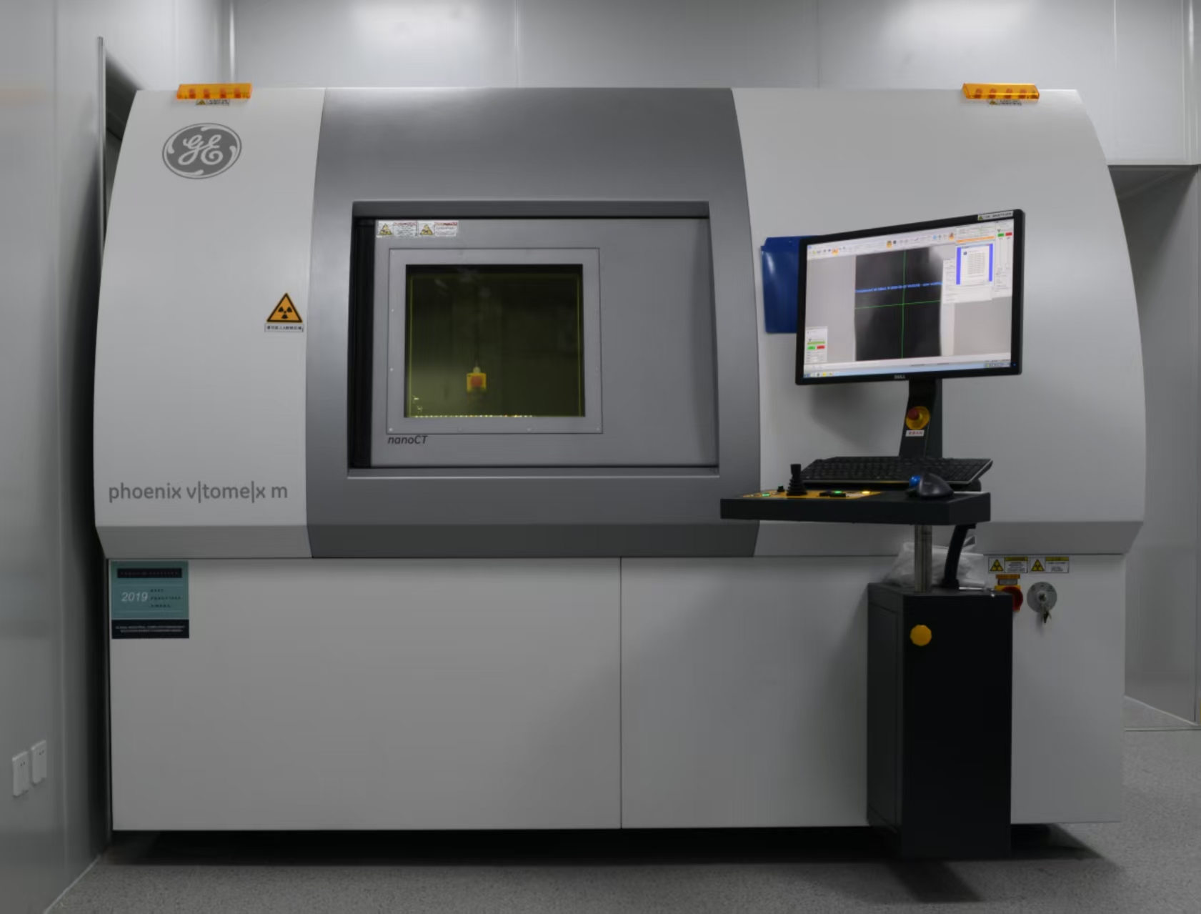 ①全尺度快速CT扫描仪:具有大工作距离下高分辨率的GE Phoenix V| tome | X m 300&180。②X射线源:开放式、高功率微焦点X 射线定向管,电压达300kv,封闭式水冷循环系统;高功率开放式纳米焦点X 射线透射管,电压达180kv。③探测器类型:温度自稳定型数字平板探测器,像素尺寸100μm, 4000×4000个像素点,400mm×400mm,动态范围>10,000:1,7.5 fps 的帧频数据传输。④机械平台:大理石基座,5轴高精度机械系统(6轴带射线源切换)。⑤最大样品直径和高度:400mm×600mm;限制移动范围时,样品最大可达500mm×600mm;3D 扫描最大样品尺寸400mm×400mm。⑥最大样品重量:高精度CT 扫描时为20kg(44lbs);最大承重可达50kg(110lbs)。⑦温度稳定性:封闭式水冷循环系统的射线管|温度自稳定型屏室|温度自稳定型探测器。⑧软件:phoenix datos | x 3D 计算机断层扫描数据采集和数据重建软件;依据如3D测量,失效分析或结构分析等不同需要可配置不同的3D数据处理和分析软件。